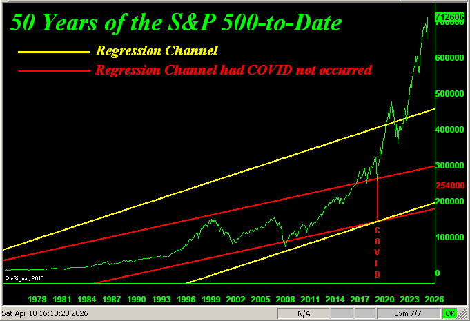 Naturally, we followed-up with the math to find ‘twould be an S&P 500 “correction” of -64% to 2540 — right in the heart as below marked of the extrapolated “had COVID not occurred” red regression channel … just in case you’re scoring at home: